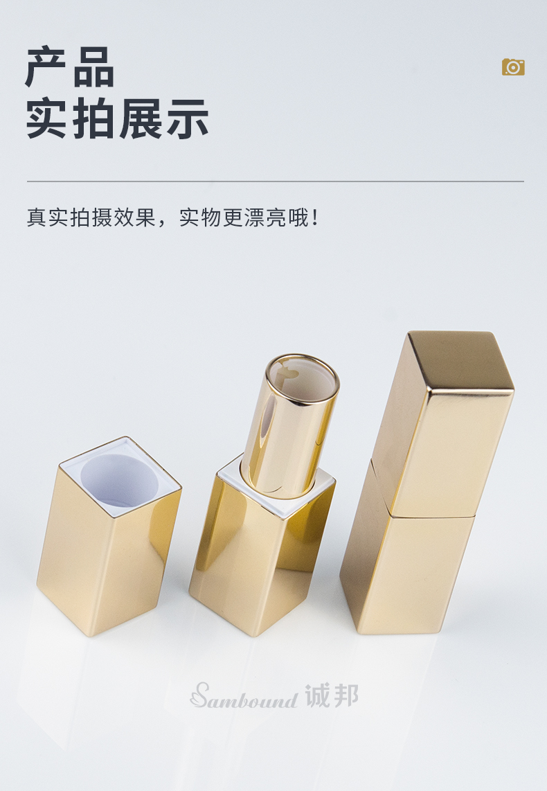 口紅管空管,鋁材質(zhì),電鍍玫瑰金,方形磁吸款,表面處理可按要求定制電鍍和3D打印。