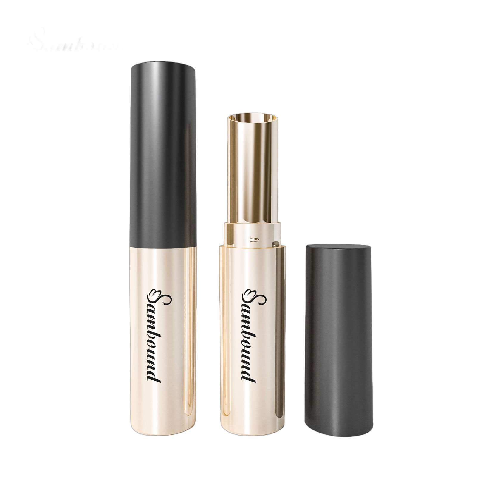 PP塑料外殼的口紅管,鋁制的中束。如果追求金屬質感和更好的手感,還可以添加一層鋁制外殼。