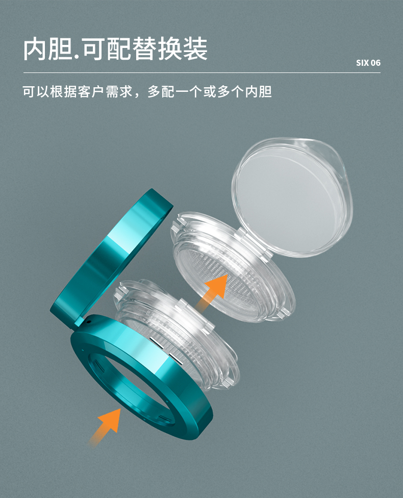 這款磁吸氣墊盒包材注塑件,帶了替換裝,還可以定做回彈網布和網塞,顏色和logo均可定制。